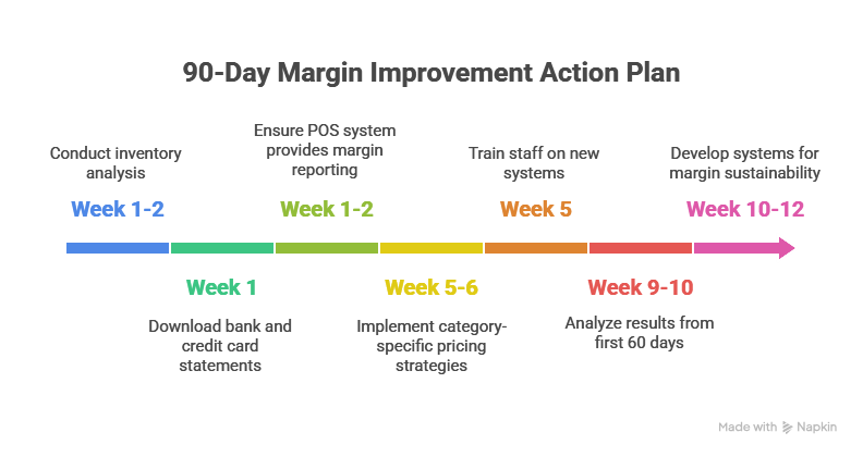 Week 1-2: Ensure your POS system provides detailed margin reporting by category and product. If it doesn't, implement basic spreadsheet tracking or consider upgrading to a system that supports your retail margin optimization goals.